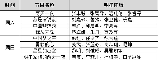 周六、周日两个时间段,近两三年间,几乎没有一家卫视开发出一档引起广泛讨论的现象级季播节目,所以几乎都是江苏卫视的《非诚勿扰》和湖南卫视的《快乐大本营》轮番坐庄,保持收视领先,尤其是江苏卫视的《非诚勿扰》几乎成为不可撼动的龙头老大。