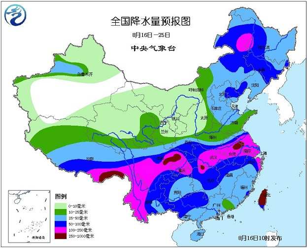 2015年8月16日中央气象台未来十天中央天气预报
