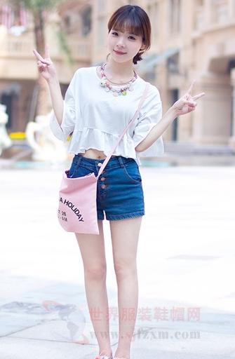 > 破洞牛仔短裤 夏日丹宁风搭配 气质出众(3)