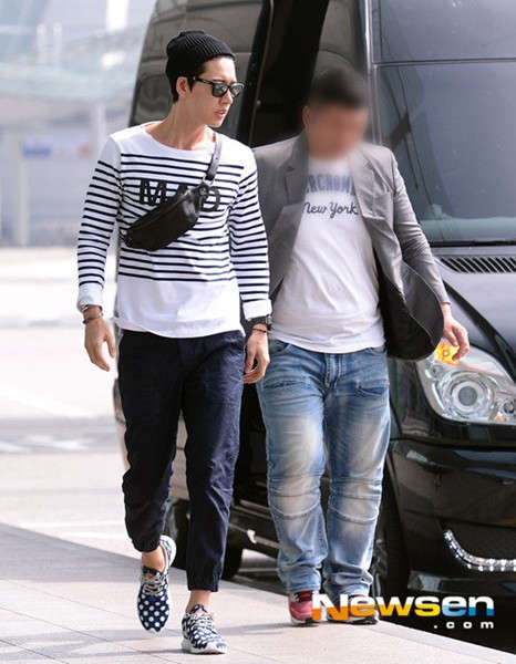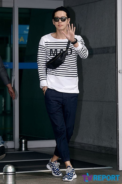 朴海镇休闲装亮相机场 飞赴中国拍摄广告